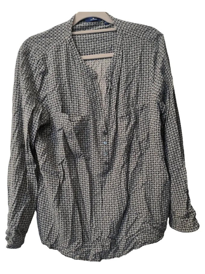 Damen Bluse Gr. 44 Blau Viskose Langarm Casual Muster