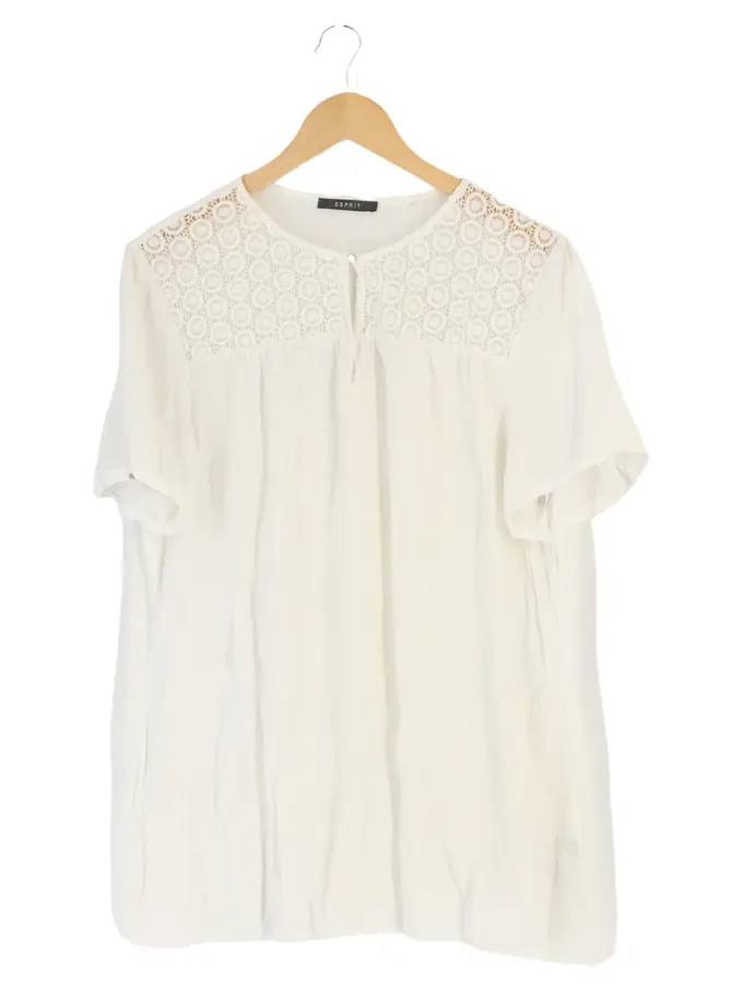 Damen Bluse Gr. 44/L Weiß Elegant Klassisch Lochmuster Spitze