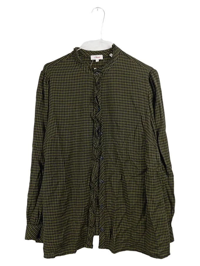 Damen Bluse Gr. 44 Oliv Kariert Rüschen Langarm