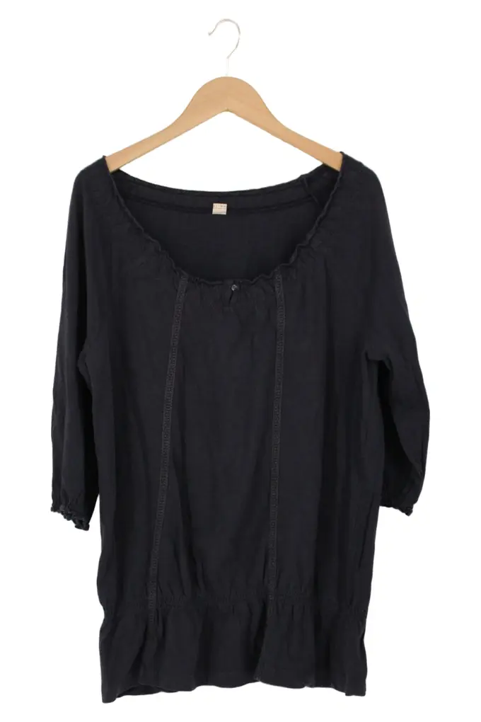 Damen Bluse Gr. 44 Schwarz Casual 3/4-Arm Baumwolle