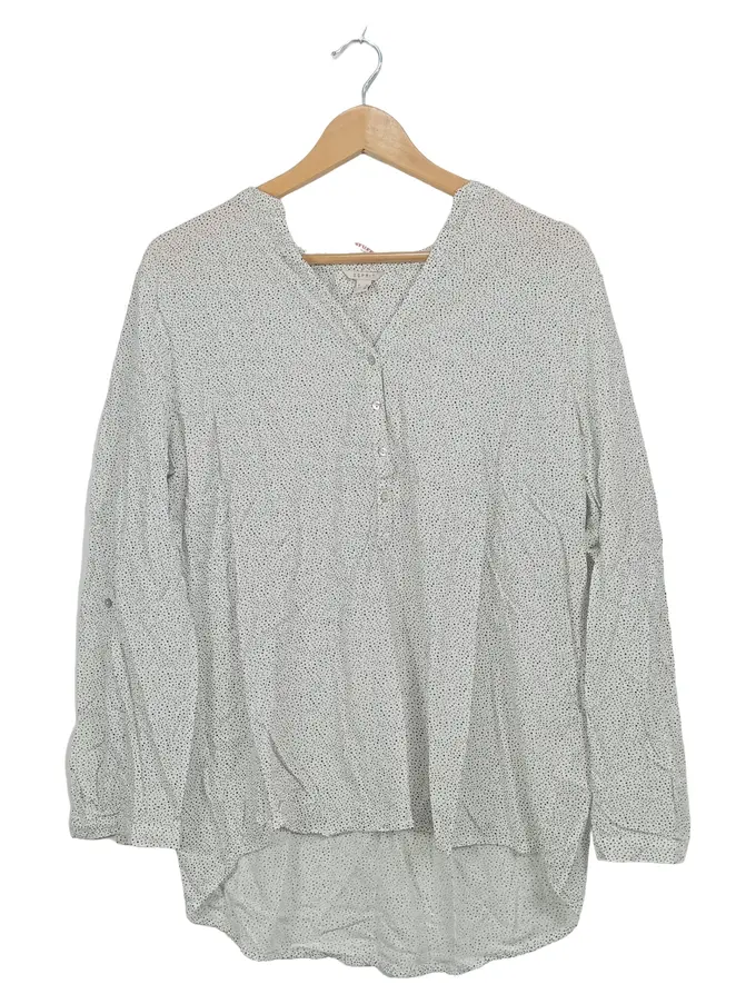 Damen Bluse Gr. 44 Weiß Schwarz Gepunktet Viskose Langarm