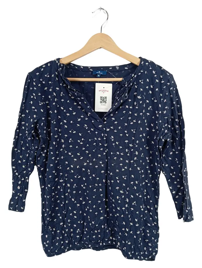 Damen Bluse Gr. M Pusteblumen Muster Blau 3/4-Arm Casual