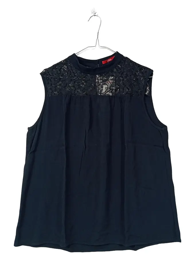 Damen Bluse Gr. M Schwarz Spitze Ärmellos Elegant Top
