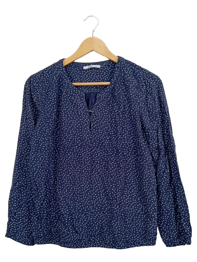 Damen Bluse Gr. S Blau Muster Langarm Viskose
