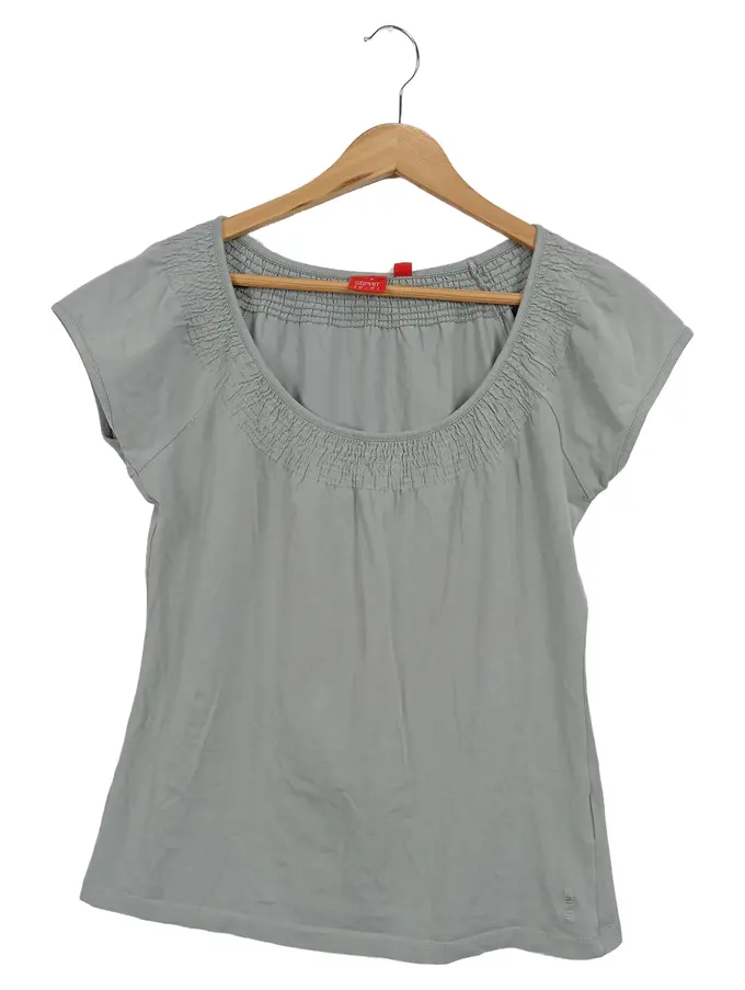 Damen Bluse Grau Gr. 38/M Basic Kurzarm