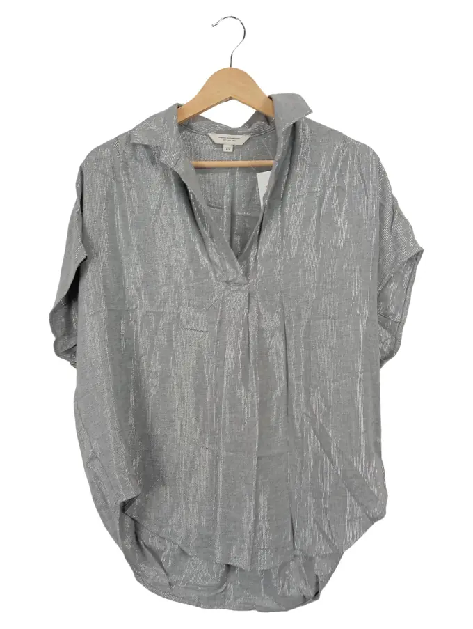 Damen Bluse Grau Metallic Gr. 34/XS Kurzarm Modern