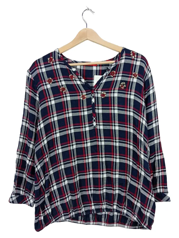 Damen Bluse Kariert Blau Langarm Modal Viskose Gr. 42