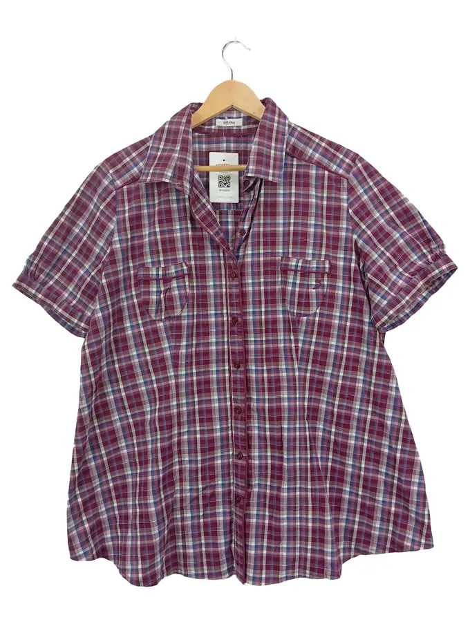 Damen Bluse kariert Kurzarm Gr. 50 Mehrfarbig Casual
