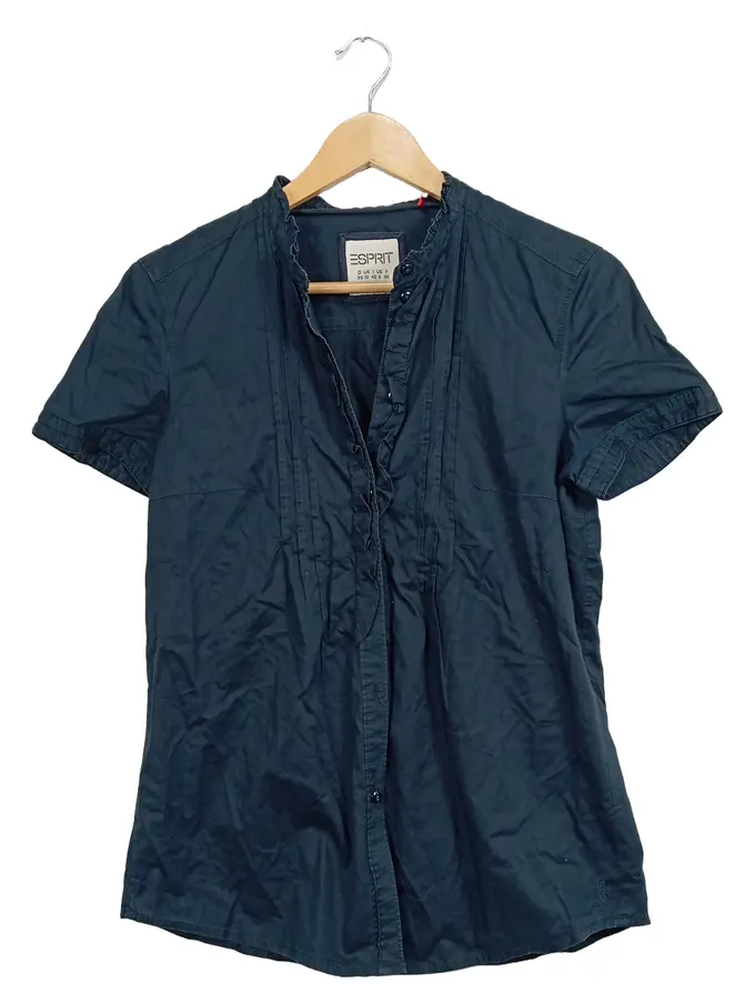 Damen Bluse Kurzarm Gr. 38 Petrol Rüschen Baumwolle Casual