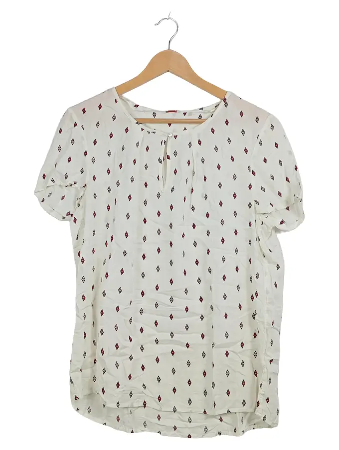 Damen Bluse Kurzarm Gr. 40/L Weiß Geometrisch Viskose