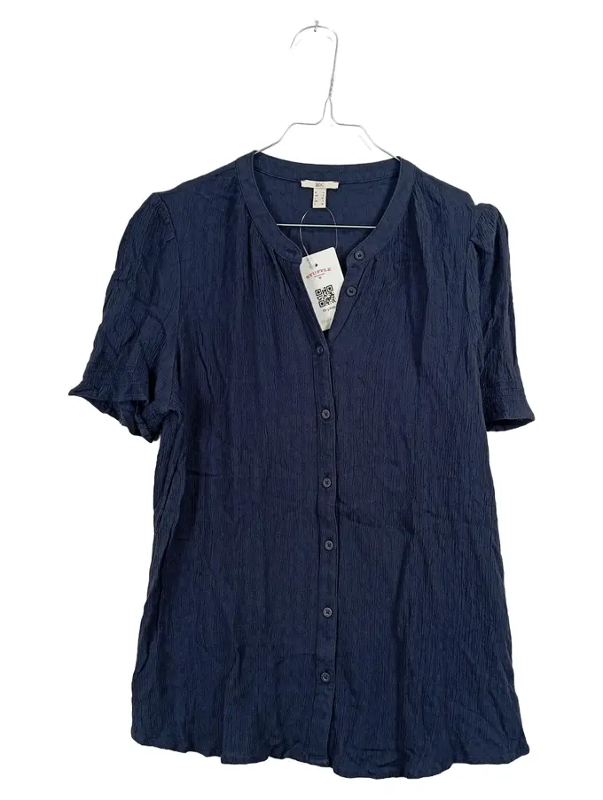 Damen Bluse Kurzarm Knopfleiste Gr. L Blau Viskose