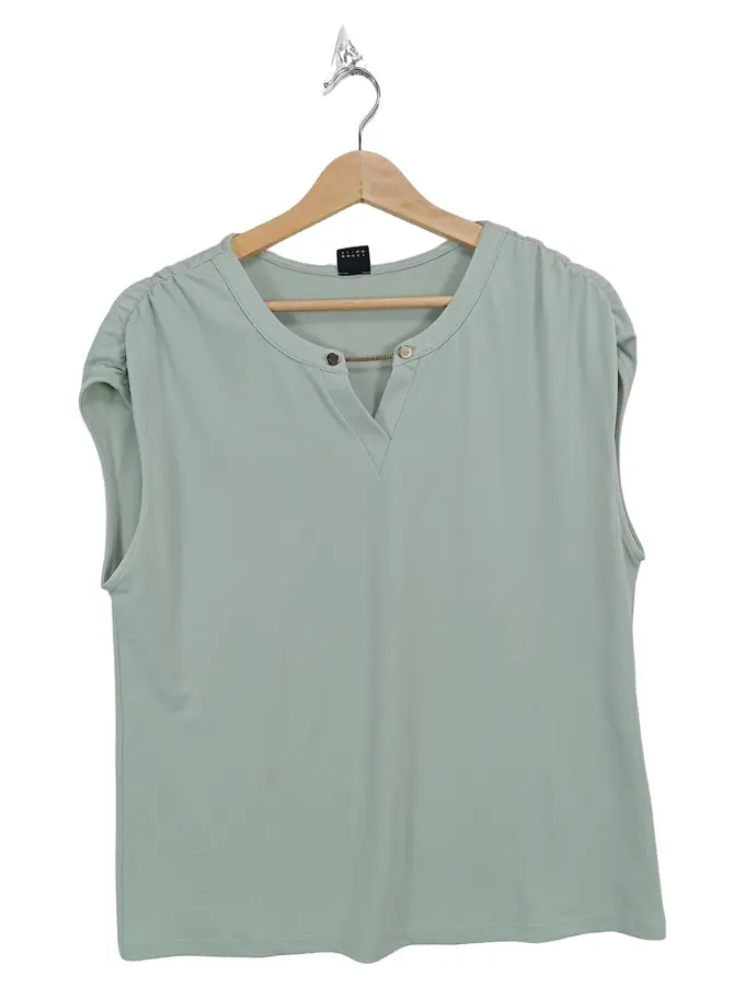 Damen Bluse Kurzarm Uni Grün Gr. 38/M Freizeit Casual