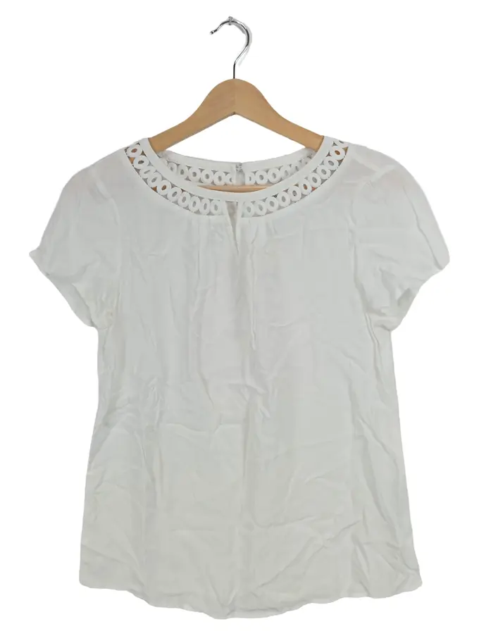 Damen Bluse Kurzarm Viskose Lochmuster Weiß Gr. 34/XS