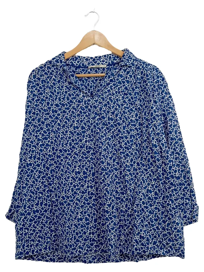 Damen Bluse Langarm Blau Abstrakt Einheitsgröße