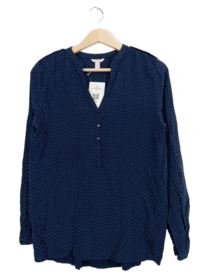 Damen Bluse Langarm Blau Punkte Gr. 36;S Viskose Casual