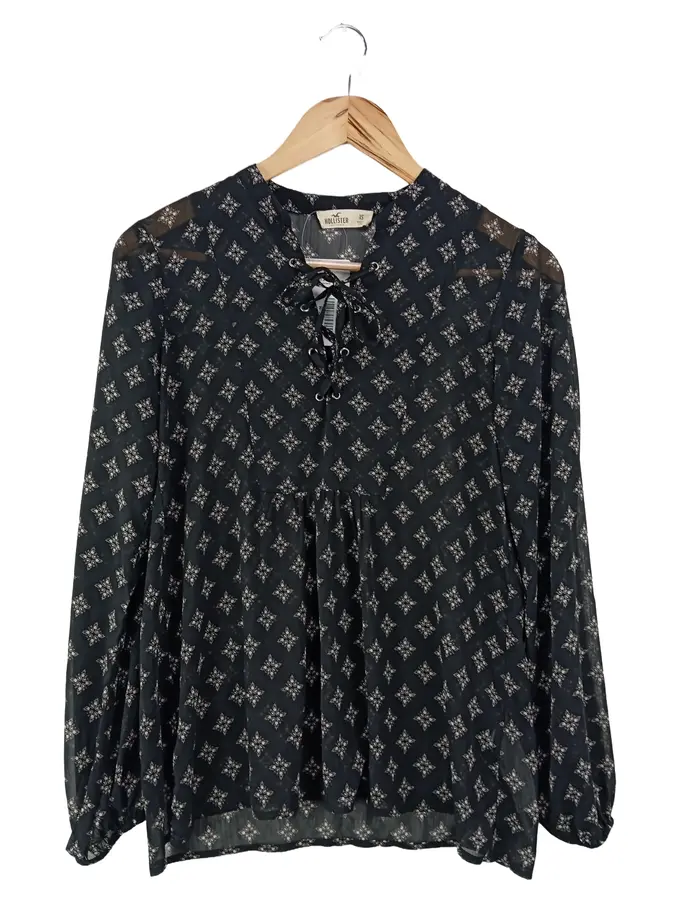 Damen Bluse Langarm Floral Schwarz Gr. 34/XS Rüschen