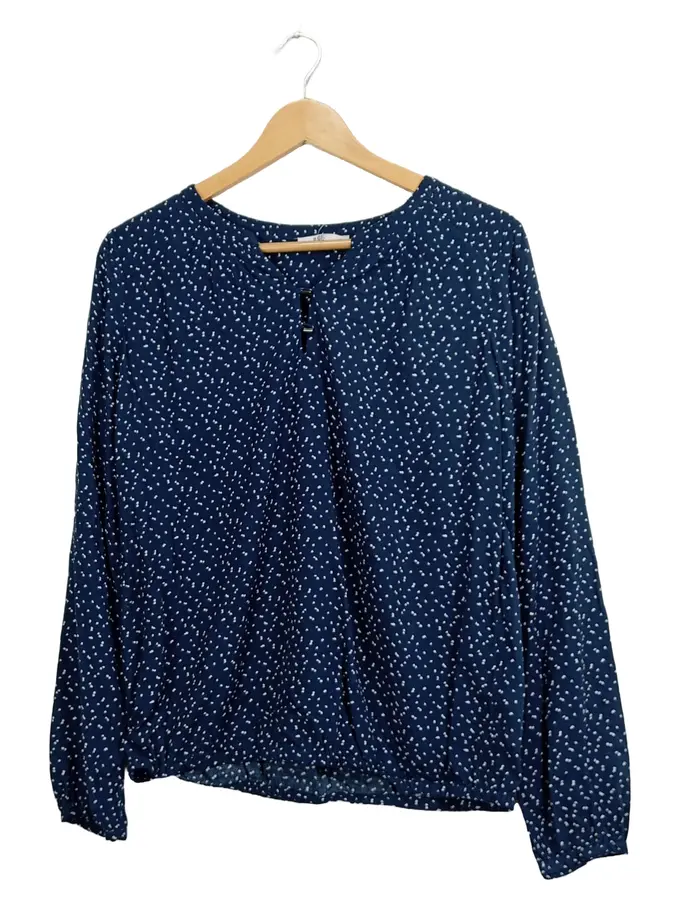 Damen Bluse Langarm Gr. 34/XS Blau Gepunktet Viskose