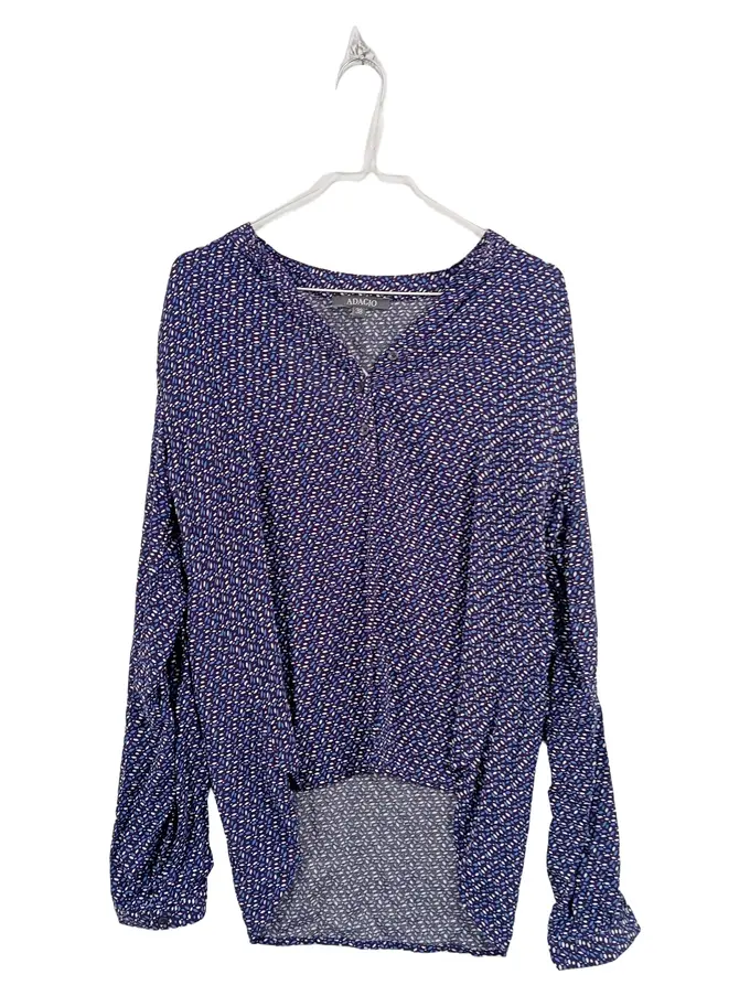 Damen Bluse Langarm Gr. 38 Blau Blättermuster Viskose