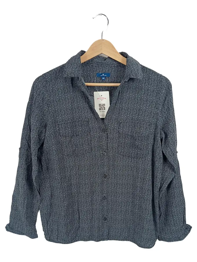 Damen Bluse Langarm Gr. 38 Blau Geometrisch Muster Viskose