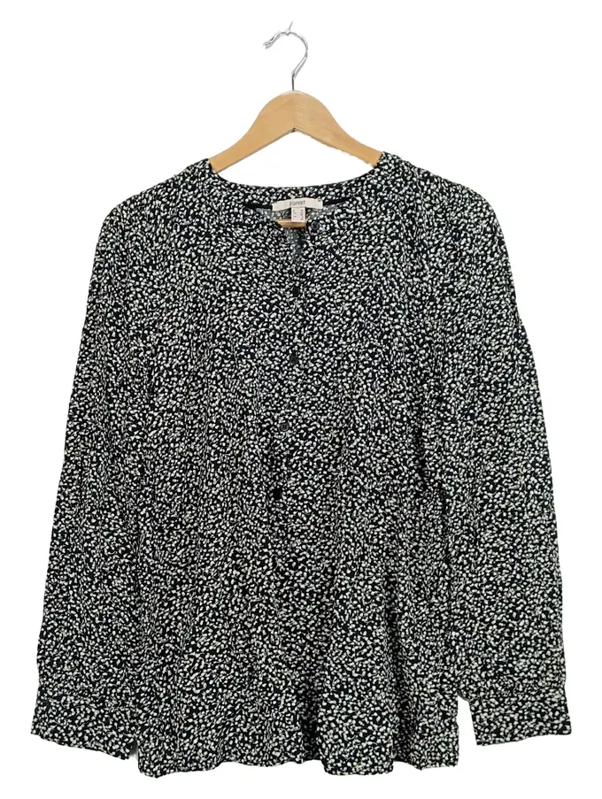 Damen Bluse Langarm Gr. 38 M Schwarz Florales Muster Viskose