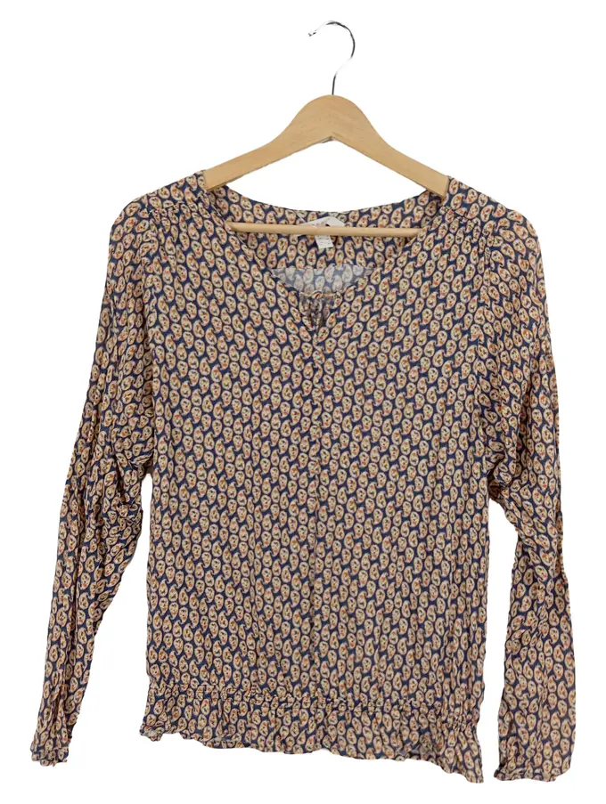 Damen Bluse Langarm Grafik Muster Mehrfarbig Gr. 32 XXS