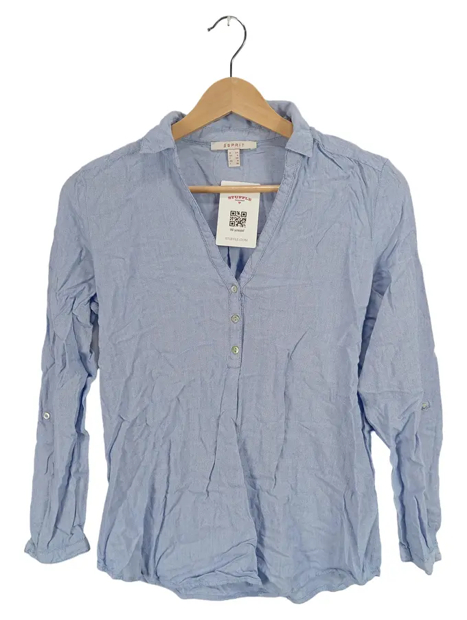 Damen Bluse Langarm Hellblau Gr. 34/XS Casual Viskose