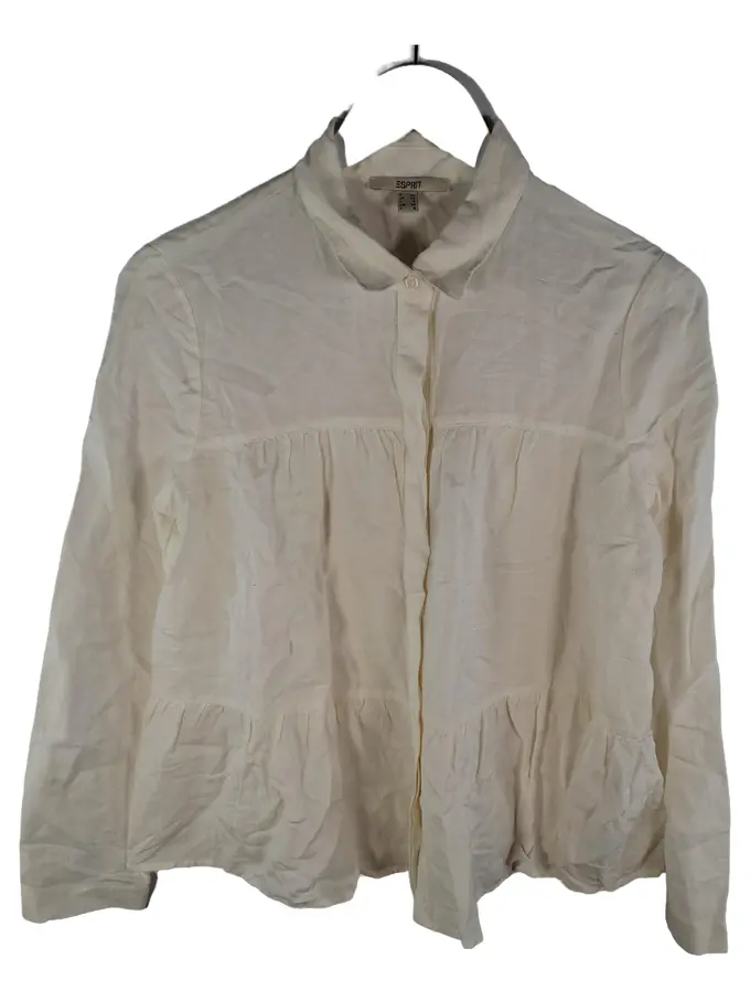 Damen Bluse Langarm Leinen Viskose Beige Gr. XS/34