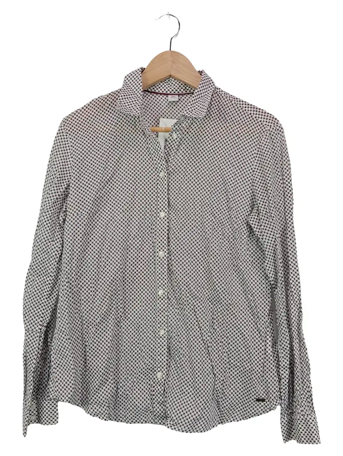 Damen Bluse Langarm Punkte Weiß Gr. 38/M Baumwolle Casual