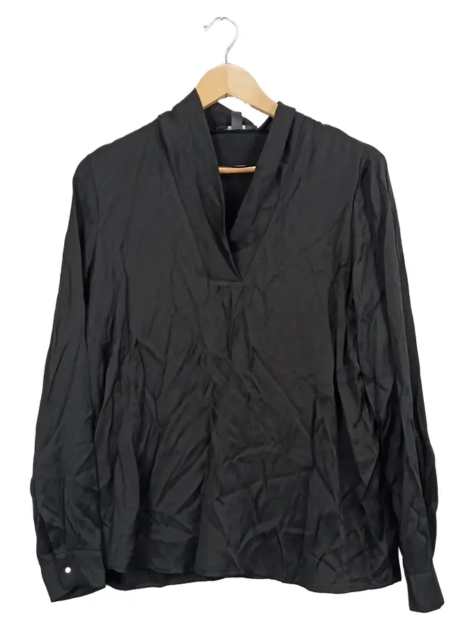 Damen Bluse Langarm Schwarz Gr. 38 M Elegant V-Ausschnitt