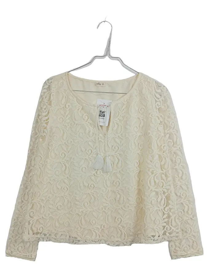 Damen Bluse Langarm Spitze Boho Floral Gr. XS 34 Beige