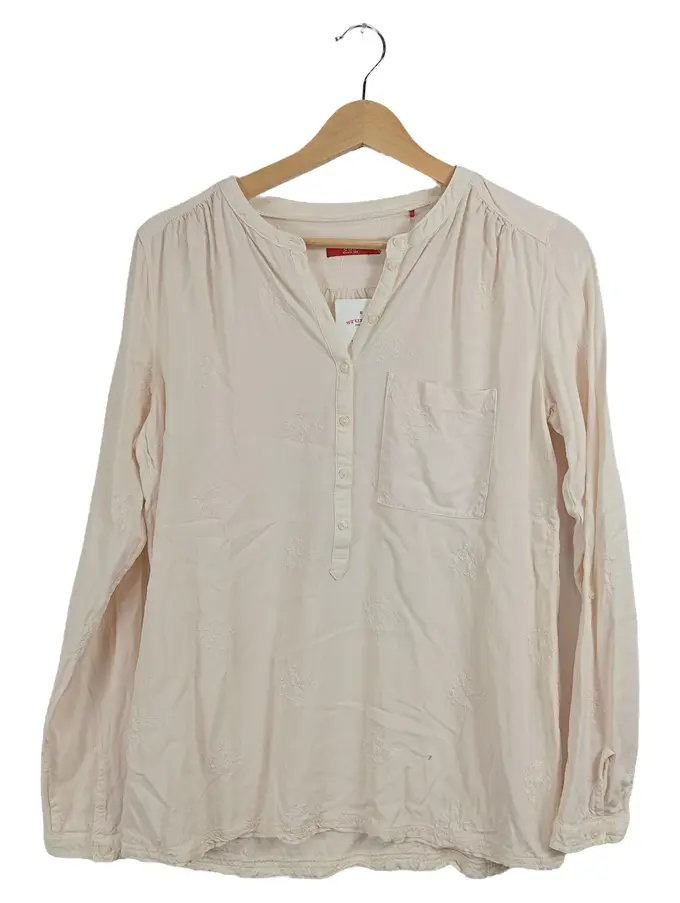 Damen Bluse Langarm Sterne Stickerei Beige Gr. S