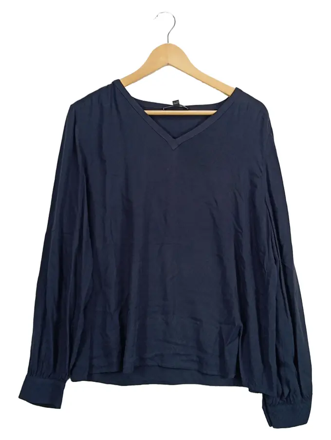 Damen Bluse Langarm V-Ausschnitt Gr. 44 Blau Casual Viskose