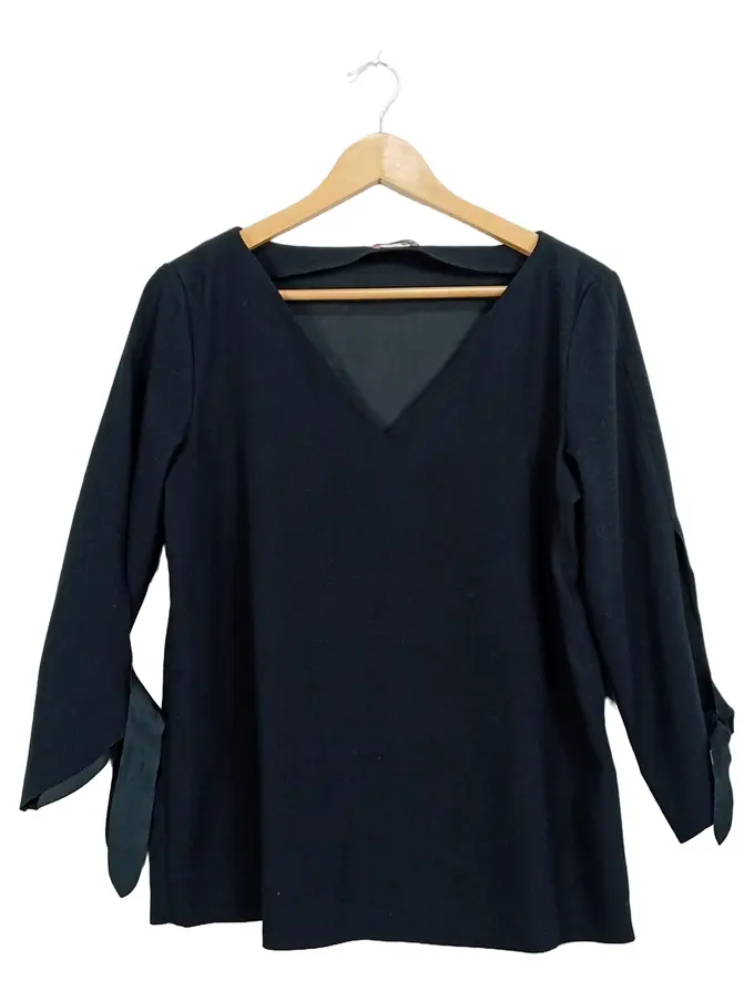 Damen Bluse Langarm V-Ausschnitt Schwarz Elegant Gr. S/36