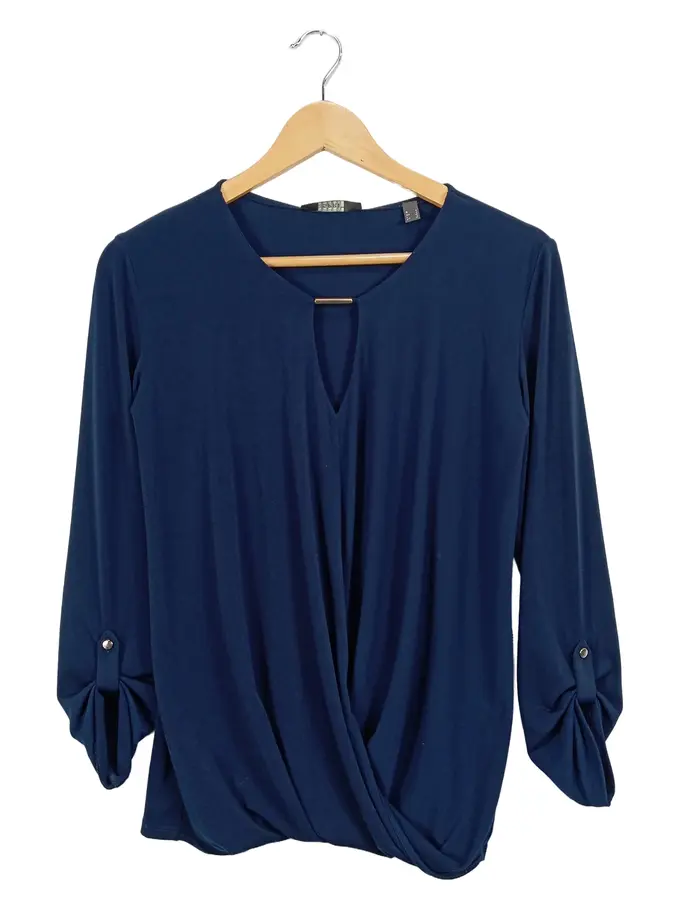Damen Bluse Langarmshirt Wickeloptik Gr. 36/S Blau Modern