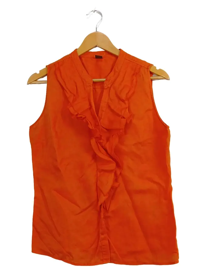 Damen Bluse Leinen Orange Rüschen Ärmellos Gr. 40 Feminin Sommer