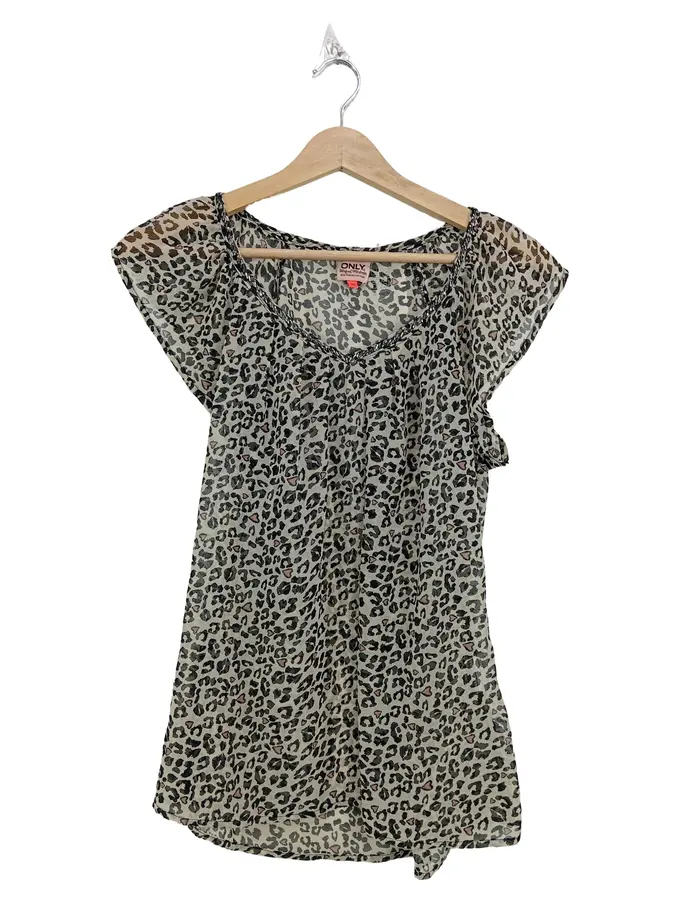 Damen Bluse Leopardenmuster Beige Gr. 36 Animal-Print Kurzarm