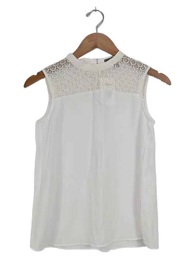 Damen Bluse mit Spitze Gr. 32/XXS Weiß Feminin