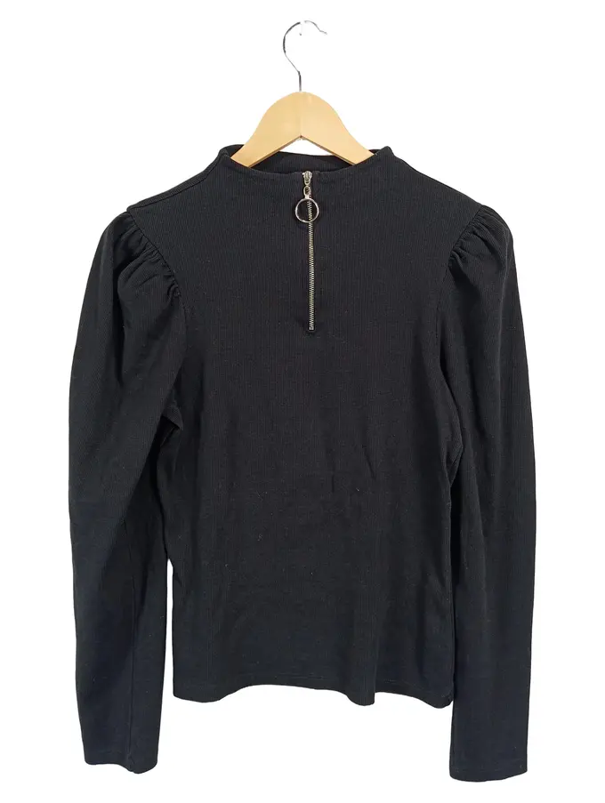 Damen Bluse Oberteil Reißverschluss Schwarz Gr. 38;M