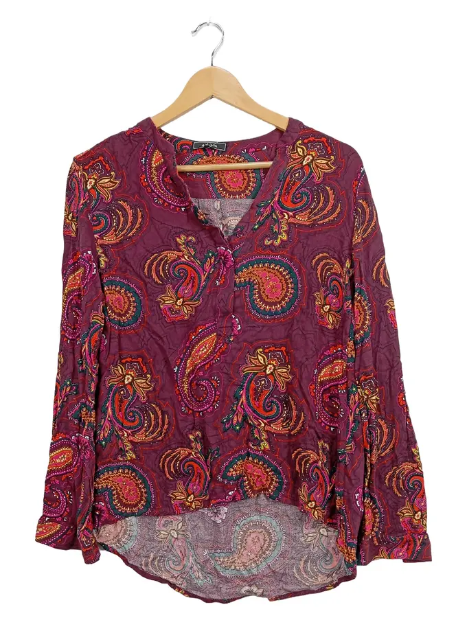 Damen Bluse Paisley Lila Langarm Gr. 38/M Freizeit Viskose