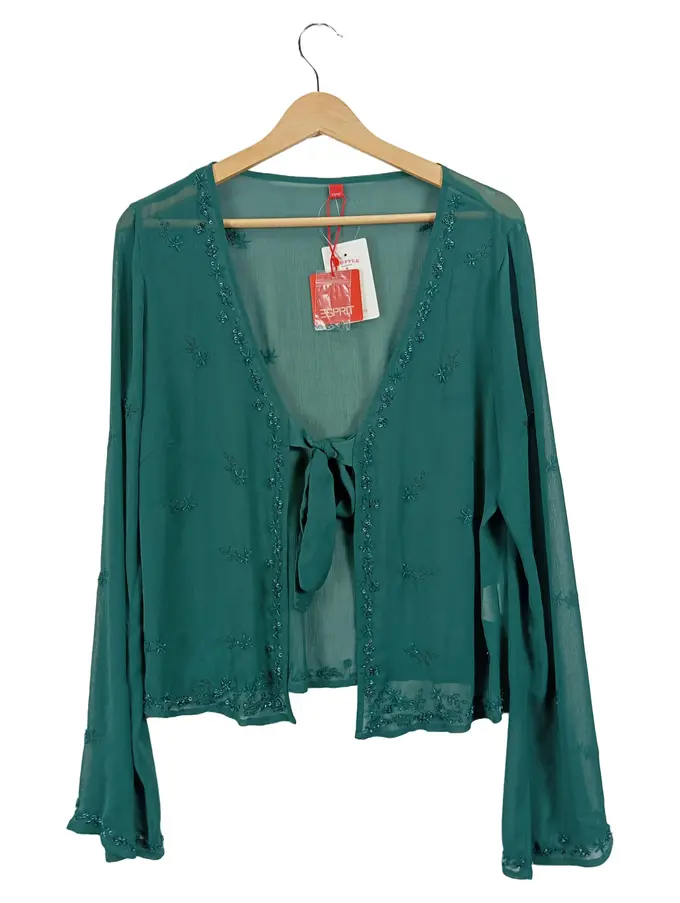 Damen Bluse Petrol Grün Gr. M Perlenbesatz Pailletten Chiffon NEU