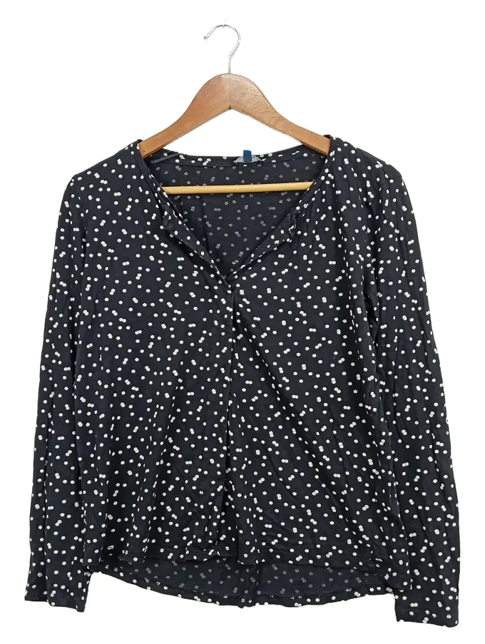 Damen Bluse Punkte Langarm Gr. 36/S Casual Schwarz