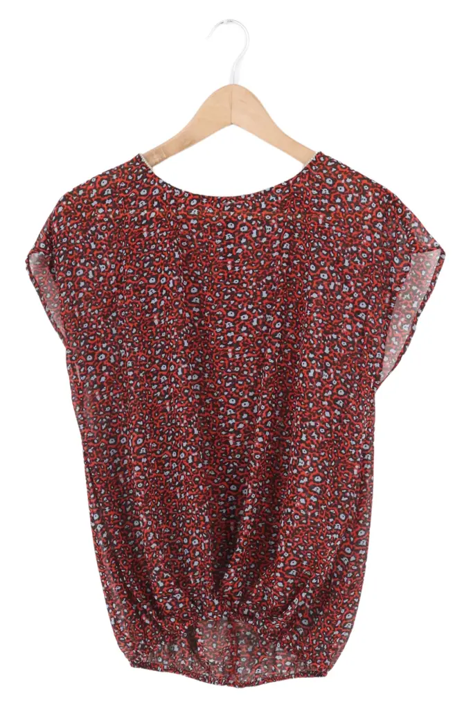 Damen Bluse Rot Gr. 32/XXS Elegant Modisch Kurzarm Muster
