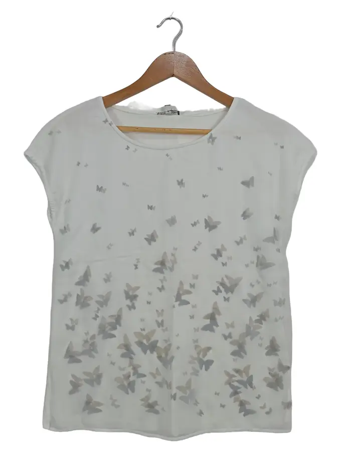Damen Bluse Schmetterlinge Weiß Gr. 34/XS Kurzarm