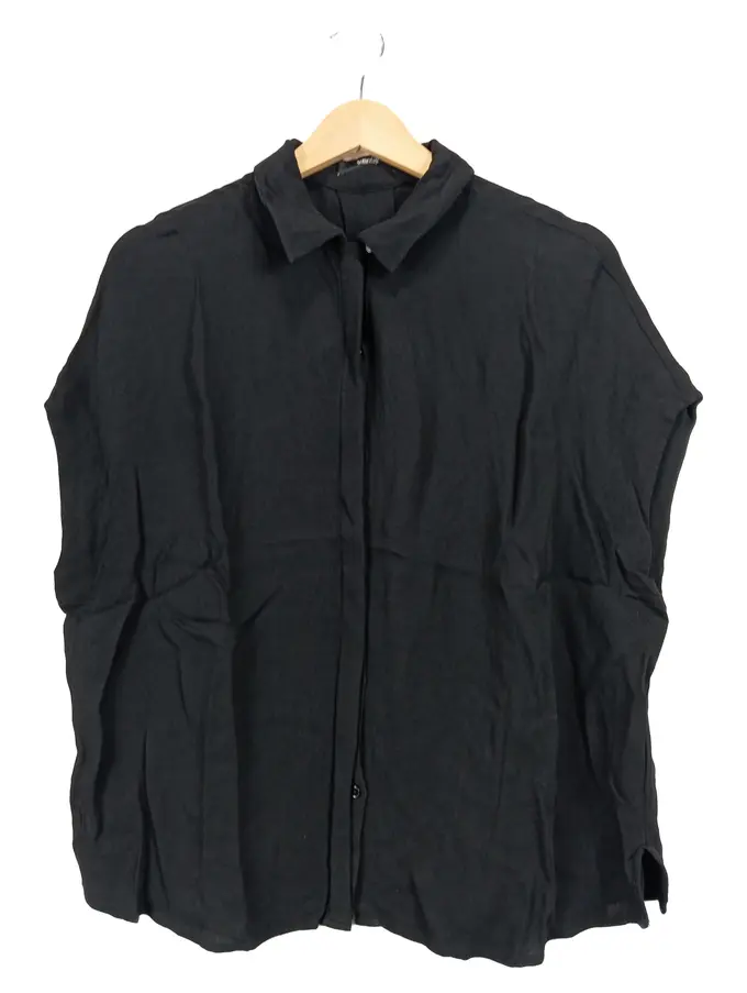 Damen Bluse Schwarz Gr. 36/S Casual Kurzarm Viskose