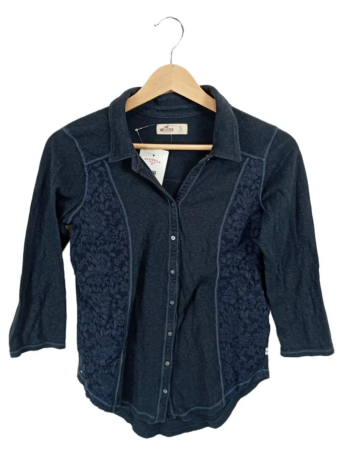 Damen Bluse Shirt Spitze Dunkelblau Gr. S Casual Feminin