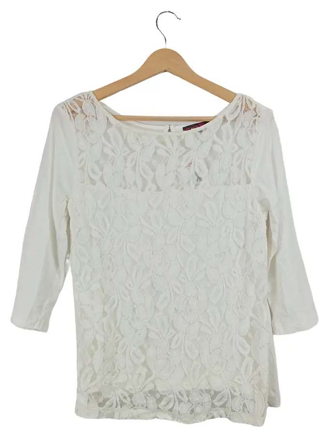 Damen Bluse Spitze Gr. M Weiß 3/4-Arm Feminin