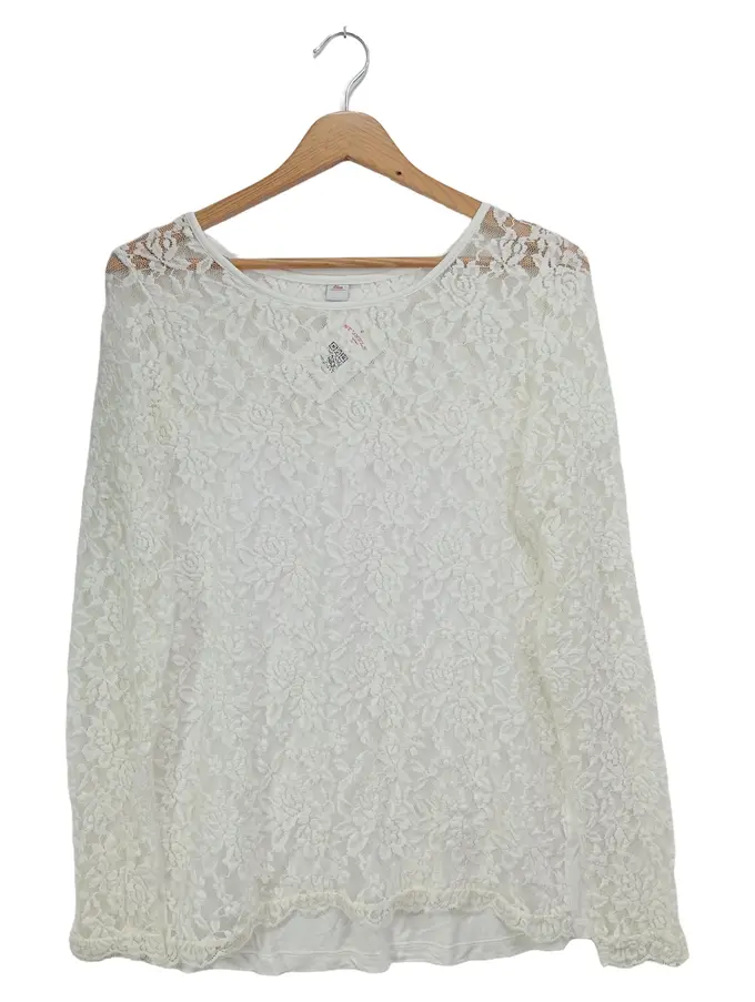 Damen Bluse Spitze Langarm Weiß Gr. 36/S Elegant Vintage