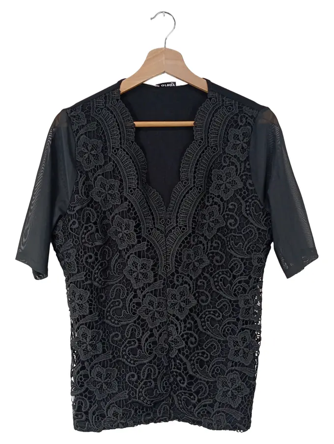 Damen Bluse Spitze Schwarz Gr. 40/L Feminin Elegant Polyester