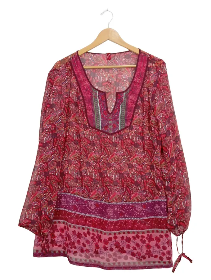 Damen Bluse Tunika Ethno Boho Muster Rot Gr. L