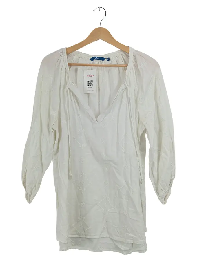 Damen Bluse Tunika Gr. 40 Weiß Stickerei Bohemian Baumwolle